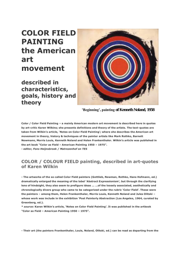 Color Field Painting Described And Explained In Short Quotes Free Resource American Art History Teaching Resources